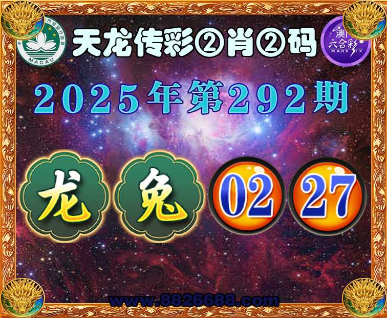 292期: 🥧《天龙传彩》 🥧②肖②码🥧【兔】【02.27】开:龙02准上榜高手