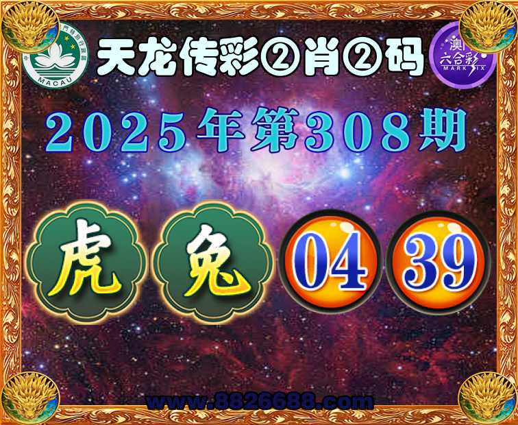 308期: 🥧《天龙传彩》 🥧②肖②码🥧【虎】【04.39】开:兔39准上榜高手