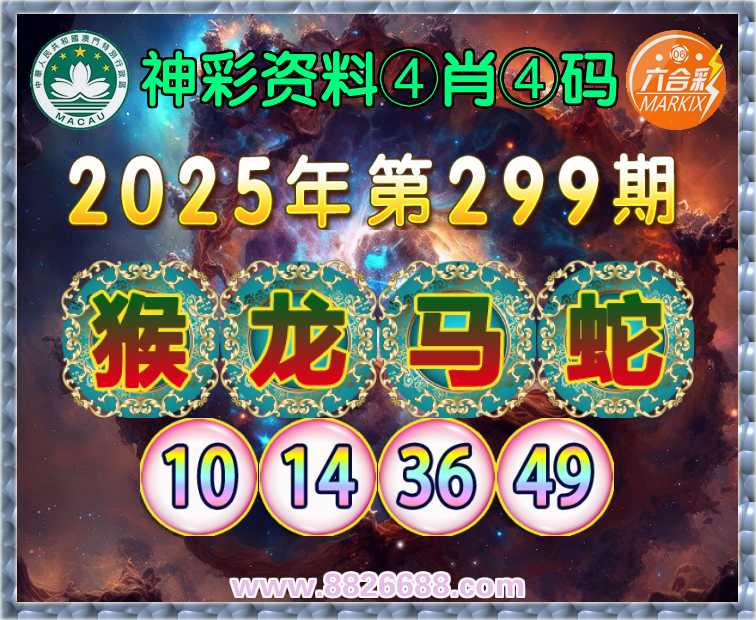 299期:〖神彩资料〗 🧶④肖④码🧶【猴龙马】【10.14.36.49】开:蛇49